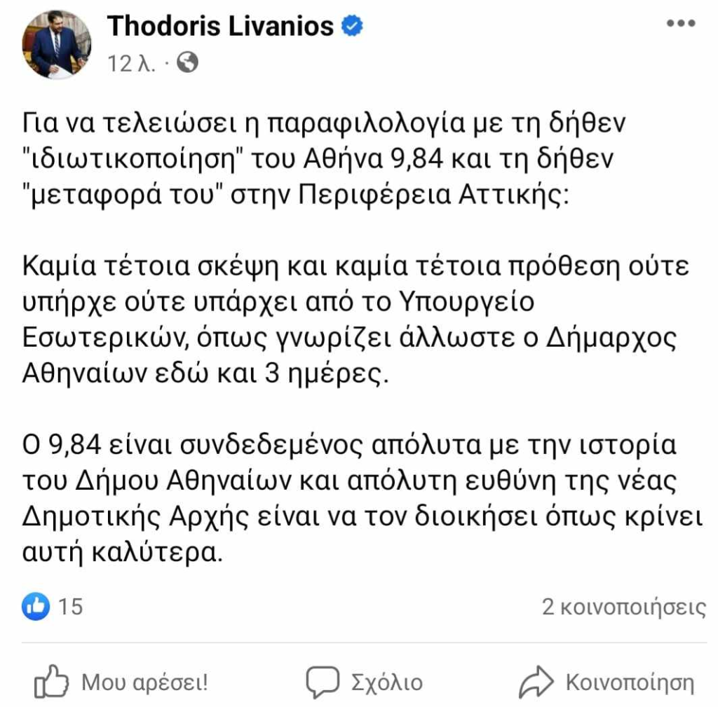 Χαιρετίζουμε τις δηλώσεις του Υπουργού Εσωτερικών κ. Θοδωρή Λιβάνιου, αναφορικά με αθηναϊκό δημοσίευμα που κάνει λόγο για δήθεν ιδιωτικοποίηση των Δημοτικών ΜΜΕ. Οι δηλώσεις του κ. Υπουργού στα μέσα κοινωνικής δικτύωσης, όχι απλά μας καλύπτουν, αλλά συντασσόμαστε απόλυτα μαζί του και με τις απόψεις που εκφράζει.